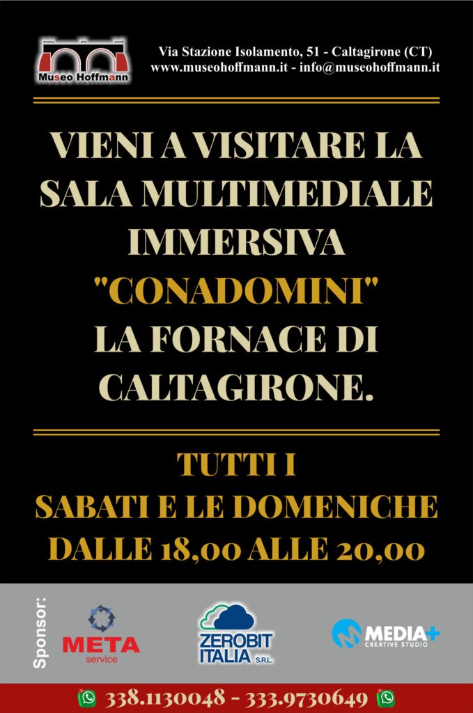 Dopo il grande successo dei primi giorni di apertura, il Museo Hoffmann di Caltagirone annuncia l’apertura ufficiale al pubblico in tutti i weekend della sala multimediale immersiva “Conadomini” – La Fornace di Caltagirone.