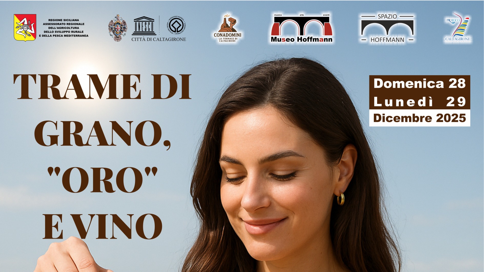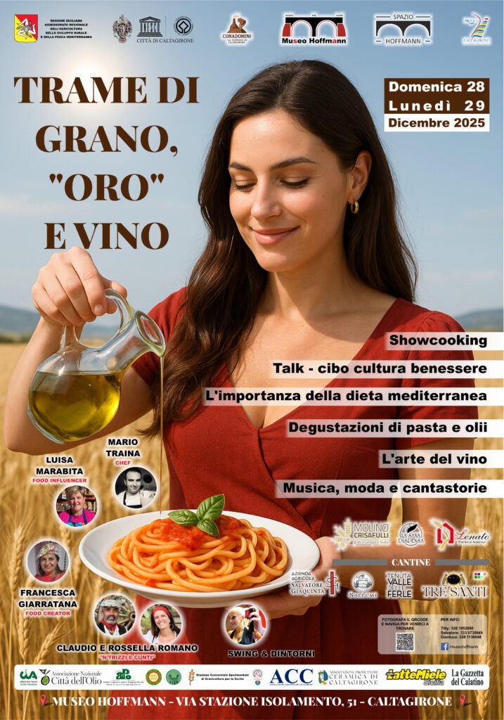 Il Museo Hoffmann di Caltagirone ospiterà domenica 28 e lunedì 29 dicembre 2025 l’evento “Trame di Grano, ‘Oro’ e Vino”, una manifestazione enogastronomica e culturale in Sicilia dedicata ai pilastri della dieta mediterranea: grano, olio extravergine d’oliva e vino.